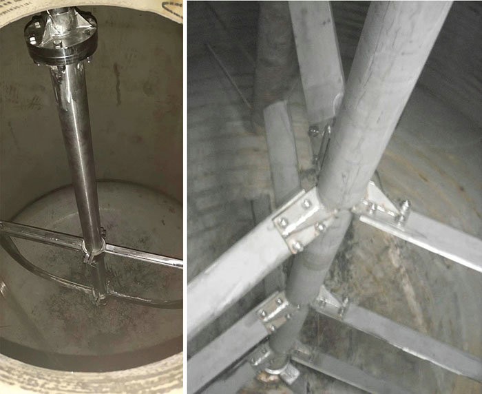 常規的攪拌形式有錨式、槳式、渦輪式、推進式、框式等,攪拌裝置在高徑比較大時,可用多層攪拌槳,特殊產品甚至會使用較為複雜的MIG式攪拌。