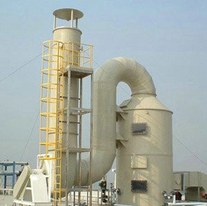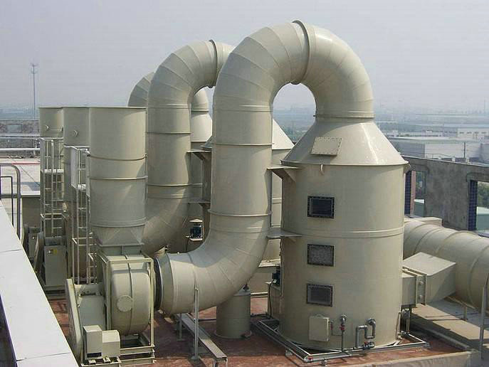 廢氣進入聚丙烯廢氣吸收塔,經氣體分配器的分配後,在行走的過程中,滿足霧化器霧化液體,氣體和液體完全飽和接觸和物理吸收和化學反應,中和或吸收液體液箱,通過除霧器標準的霧回大氣層。